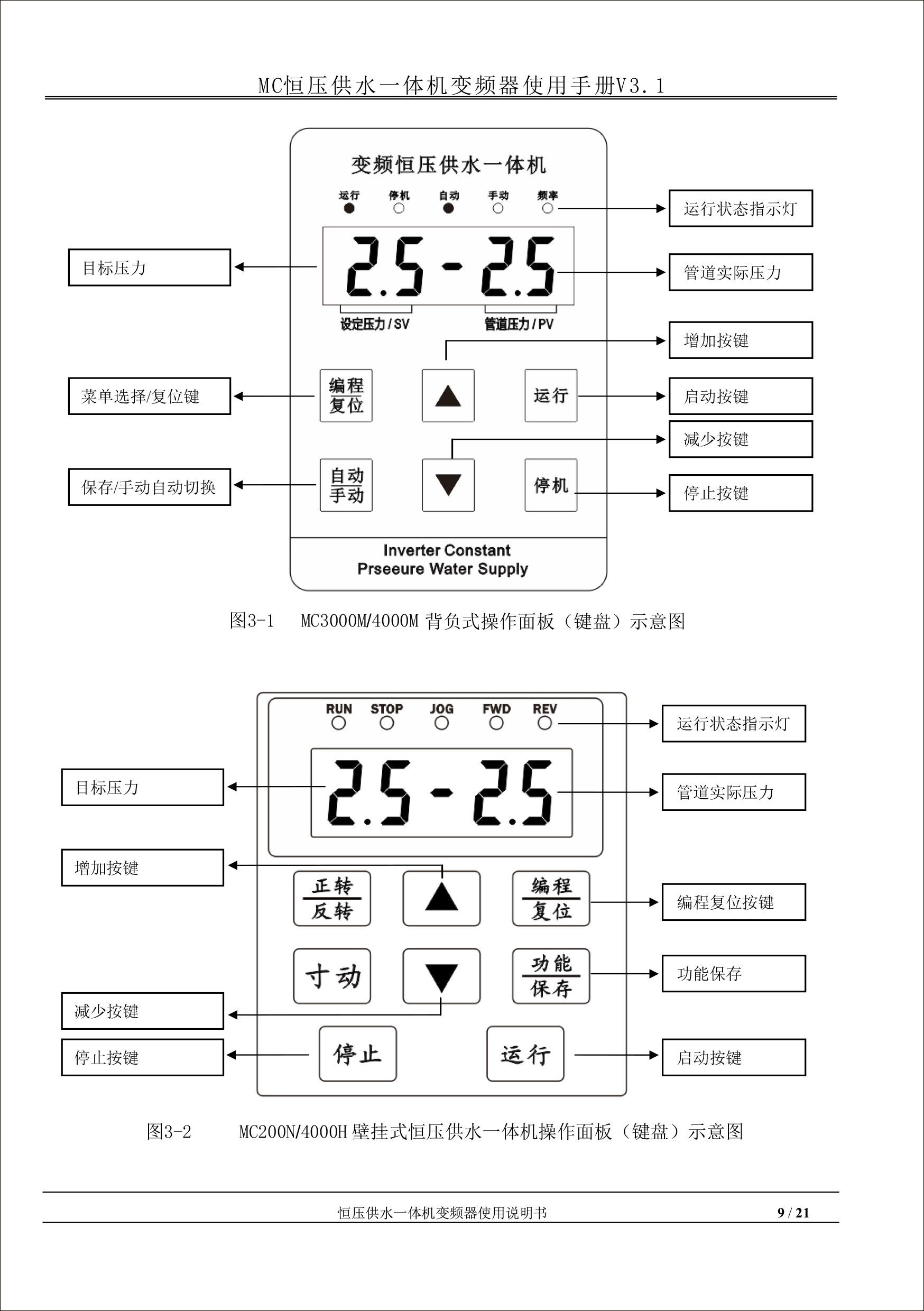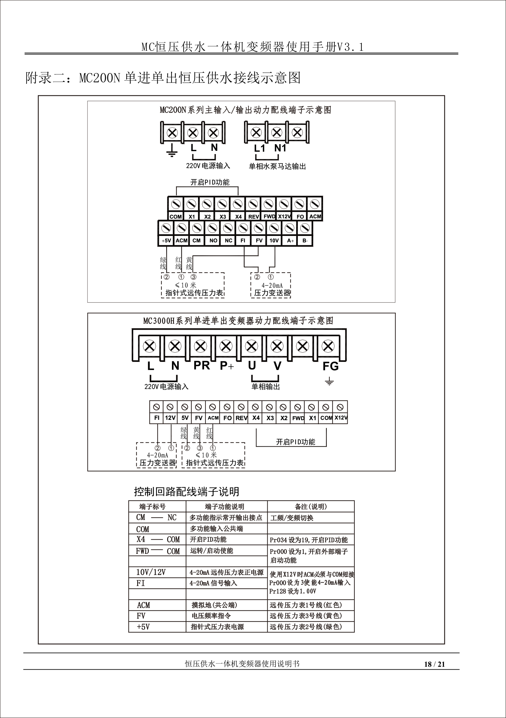 MC恒壓供水一體機(jī)變頻器使用手冊(cè)V31-181205